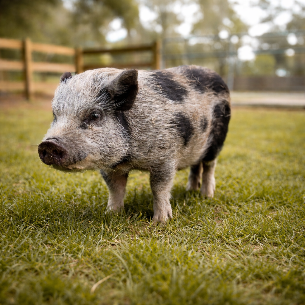 Juliana Mini pigs usually stand 14-19 in at the shoulders and are 24-30 in (0.6-0.8 m) long. Miniature pigs reach half their adult weight by about 1 year of age and will continue to grow slightly until 4-5 years of age, when their growth plates completely fuse. The life span of miniature pigs typically ranges between 8-15 years, with a maximum life expectancy of 20-21 years. Mini pigs begin puberty as early as 2-4 months of age.